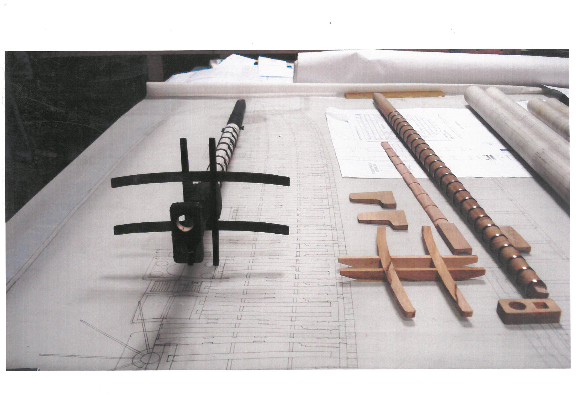 Mon premier travail a consisté à redessiner les plans anglais en dessin industriel : en trois dimensions à l'échelle choisie. Sur ce point j'étais bien embêté ! L'orthodoxie oblige dans ce milieu à utiliser une échelle en pieds : 1/48 ou 1/36 ; l'une trop petite pour les détails l'autre trop grande pour l'atelier de fabrication.