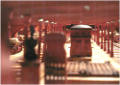 On peut observer sur ce modèle la position inclinée vers l'arrière du grand mât. Ce n'est pas une interprétation, il est incliné sur le plan anglais de 1796. N'ayant pas de devis de campagne au retour de la guerre d'Amérique, je ne sais pas à quelle date on décide de l'incliner ? Il suffit de savoir que cette pratique est nécessaire pour une bonne marche du vaisseau : quand le mât (ou les deux : misaine et grand-mat) est incliné vers l'arrière, l'effort de voilure s'élève obliquement et le vaisseau, soulagé sur l'avant plongera moins et donc tanguera moins et tiendra mieux le vent ! Cette explication est fournie par J. Boudriot et confirmée par les pratiquants actuels de la voile. Je fus en désaccord avec lui sur un point : les couleurs entre préceintes étaient selon lui toujours de couleur ocre jaune ; pour moi, selon certains témoins du 13 Prairial, deux vaisseaux : le Northumberland et le Sans-Pareil (80 canons) étaient peints en rouge Sur les listons entre préceintes. ( voir au bas du texte ). Ces couleurs ne paraissent pas sur le modèle, mise à part les intérieurs, le choix ayant été pris d'un visuel en bois teinté. les préceintes étant noires du fait de la couleur de l'ébène.